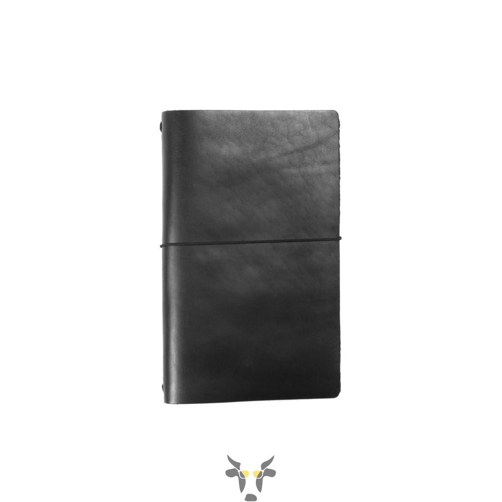 Refillable leather notebook with elastic strap. Fits a Moleskine. 5.5" W x 8.5" H